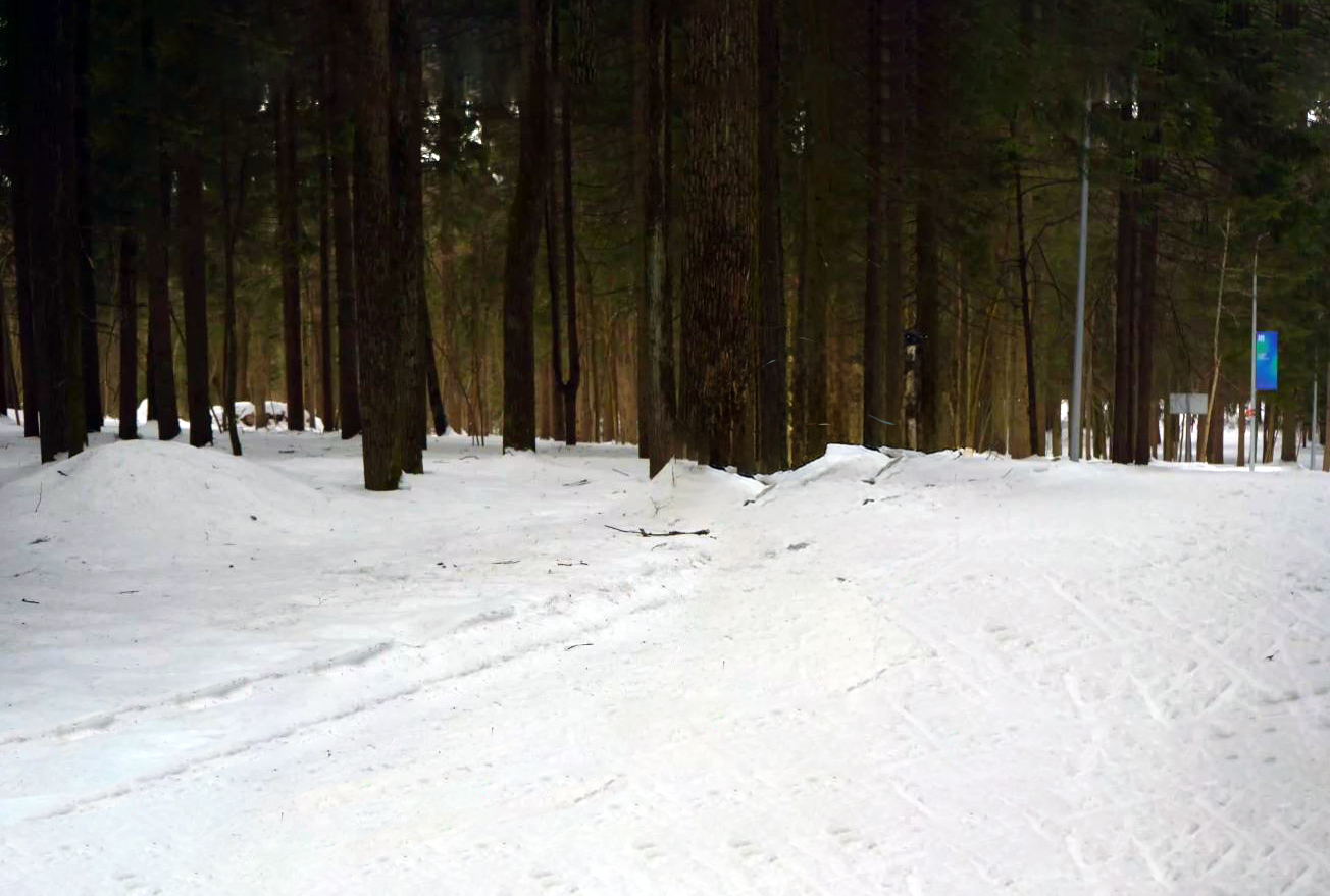 Появляется местами с деревьев разный мусор. Но когда стали использовать искуствнный снег, стало лучше. Раньше после крайнего подьема к перекрестку уже не оставалоь норм снега, сейчас есть подушка снега. Ратрак перемешивает и хорошо. Ролерный круг нормальный, катают ратраком